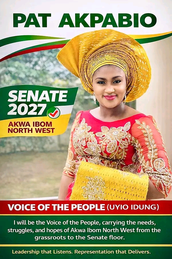 In a statement circulated on social media platforms, Akpabio announced her intention to consult widely across the district, unveiling the slogan “Voice of the People (Uyio Idung)” as the central theme of her political movement. She described her mission as a commitment to grassroots-driven leadership, promising to take the “needs, struggles, and hopes of Akwa Ibom North West from the grassroots to the Senate floor.”