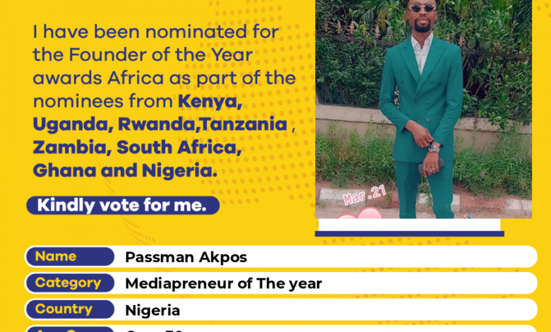 FOYA Awards 2021. Please kindly vote for me. PASSMAN AKPOS