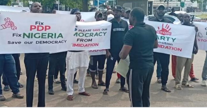 Abuja, Nigeria — Some members of the opposition People’s Democratic Party (PDP) on Thursday staged a peaceful protest at the United States Embassy in Abuja, calling on the international community to intervene and help protect Nigeria’s democracy from what they described as a “slide toward a one-party state.”