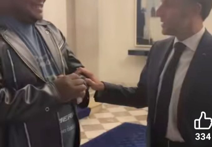 Nigerian celebrity barman and socialite, Cubana Chief Priest, has once again set social media ablaze after sharing photos from his recent encounter with French President Emmanuel Macron and First Lady Brigitte Macron.