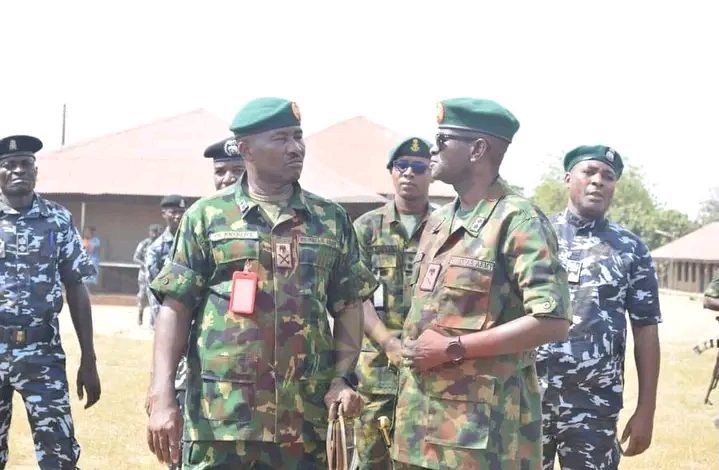 Upon arrival, the Theatre Commander was received by the General Officer Commanding 2 Division and Commander Sector 3 OPFY, Major General C.R. Nnebiefe, who briefed him on ongoing joint operations involving the military, police, intelligence units, and other security agencies working to ensure the safe rescue of the students.